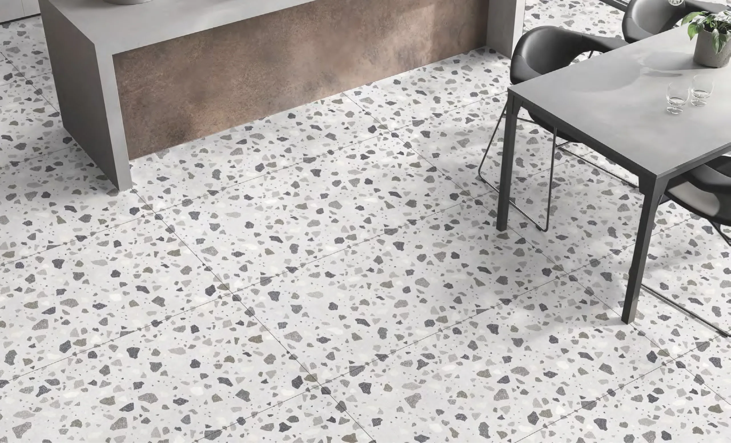 Terrazzo Finish Tiles bring creativity and personality.